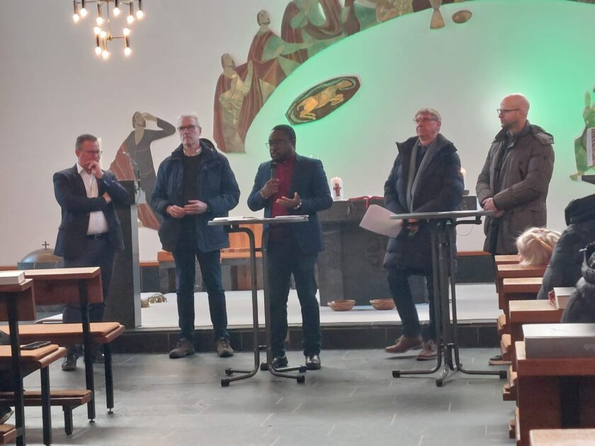 Im Anschluss an das 10 Uhr-Hochamt informierten Vertreterinnen und Vertreter des Bistums, des Kirchenvorstands und des Pfarrgemeinderates über die Zukunft des Kirchstandortes St. Wiho.