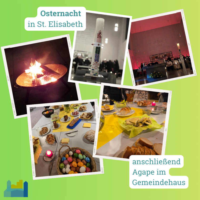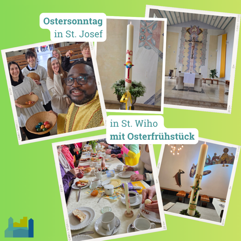In der Osternacht am Samstag in St. Elisabeth wurde es dann richtig festlich: mit dem Chor Resucito, Osterkerzen und ganz viel Freude. Im Anschluss wurde zur Agapefeier ins Gemeindehaus eingeladen, zu der die Gemeindemitglieder gebackene Osterlämmer, Osterbrot und gefärbte Eier mitbrachten. Auch die Ostergottesdienste am Sonntag in St. Josef und St. Wiho waren festlich und voller Freude. Neben dem traditionellen Ostereiersuchen gab es in St. Wiho im Anschluss an den Gottesdienst ein köstliches Osterfrühstück im Gemeindehaus.