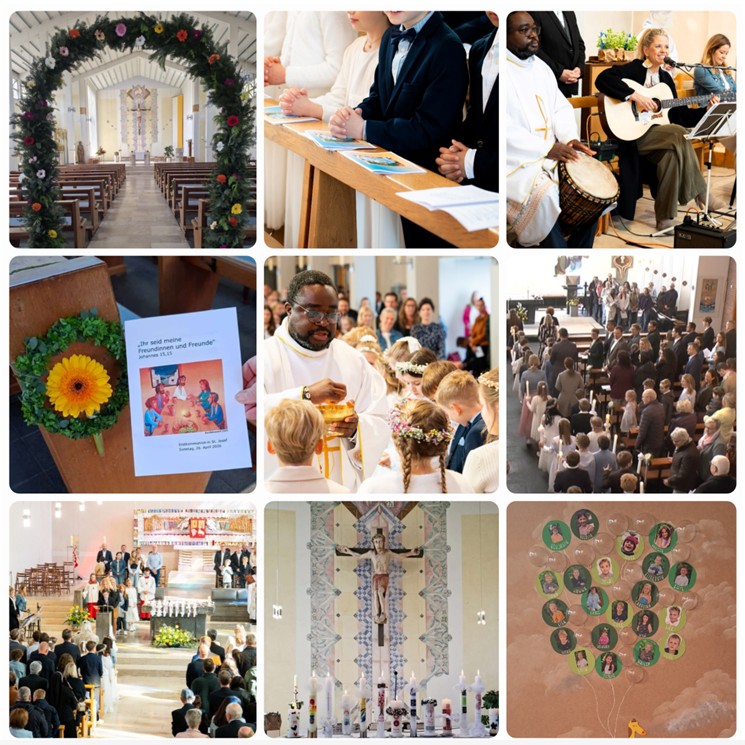 In unseren drei Gemeindeteilen St. Elisabeth, St. Wiho und St. Josef haben an drei Sonntagen insgesamt 63 Mädchen und Jungen die erste heilige Kommunion empfangen. Es waren feierliche und lebendige Gottesdienste, die die Kinder mit Fürbitten, Gebeten und Gesang mitgestaltet haben. Seit November hatten sich die Kinder mit ihren Katechetinnen, Katecheten und Eltern auf diesen besonderen Tag vorbereitet unter dem Leitwort aus dem Johannesevangelium „Ihr seid meine Freundinnen und Freunde“ (Joh, 15,14).