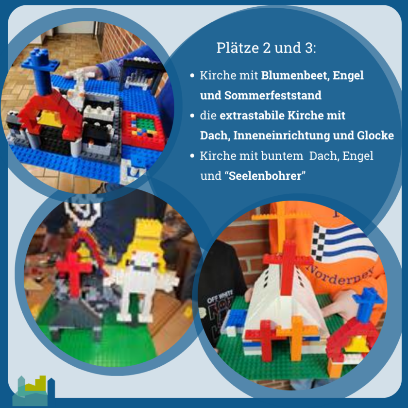 Neben den Grußworten und Glückwünschen von Bürgermeister Adrian Schäfer und Pastor Schwegmann-Beisel von der Ev.-Luth. Christuskirche, wurden auch die Gewinnerinnen und Gewinner der Lego-Aktion „Bau dir deine Traumkirche!“ bekannt gegeben. Als Preise gab es Eis-Gutscheine und Lego-Sets.