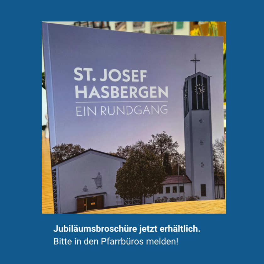 Zum Jubiläum ist eine Broschüre erschienen, die die Geschichte des Kirchortes beleuchtet und die Architektur von St. Josef anschaulich erklärt. Dieses Booklet ist in den Pfarrbüros erhältlich.